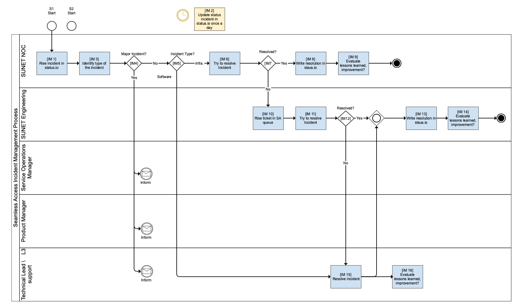 Handling of security incidents and resolution times are defined in the Seamless Access Operational Level Agreements - OLA. This process elaborates on them in a bit more detail.